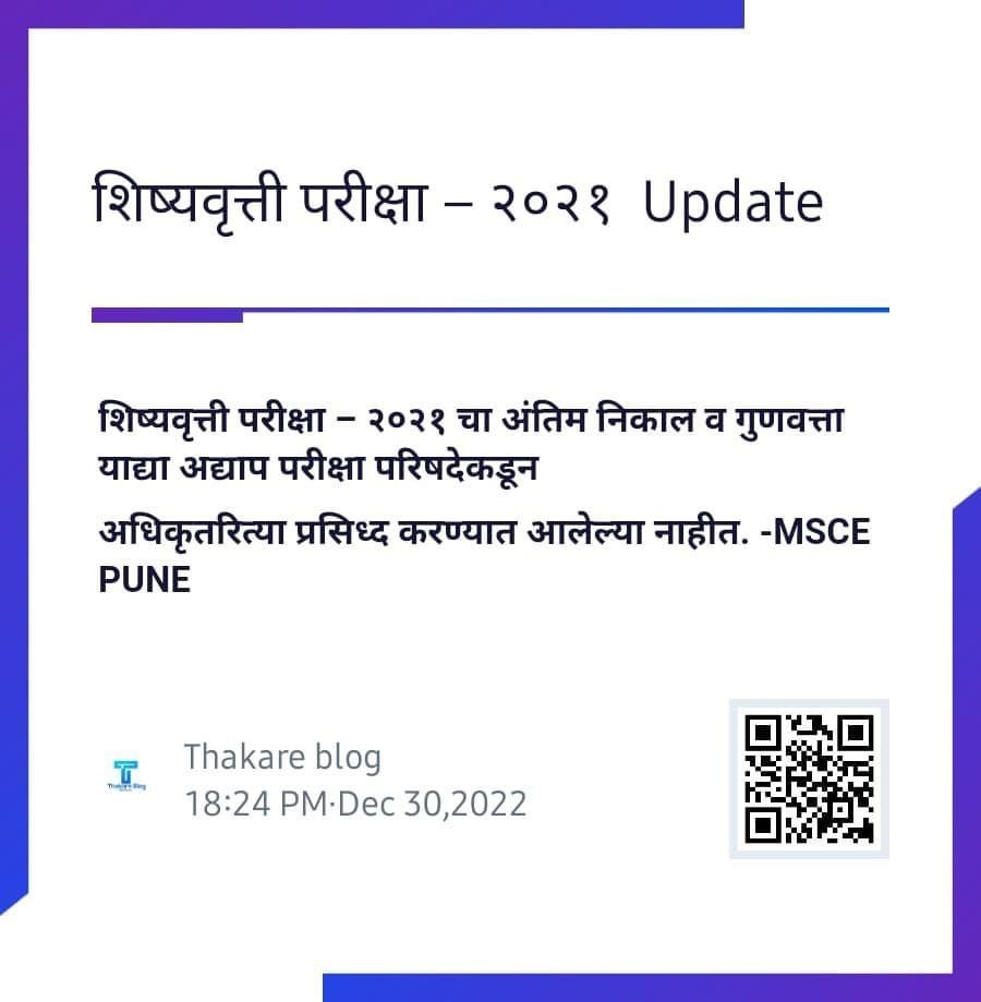 #Update - पूर्व उच्च प्राथमिक शिष्यवृत्ती परीक्षा (इ. ५ वी) व पूर्व माध्यमिक शिष्यवृत्ती परीक्षा (इ. ८ वी) २०२१ निकाल - सूचना